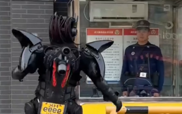 郑州一男子穿自制战甲体验送外卖,当事人称自己从小有个机甲梦。12月3日河南郑州。当事人高先生:穿这个送外卖就感受一下这种感觉,不是专职(做外卖员)。