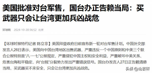 同时国台办的发言人也表示,像是台湾这样妄图通过不断的购买武器,想要获取安全,那是必定不可能的。