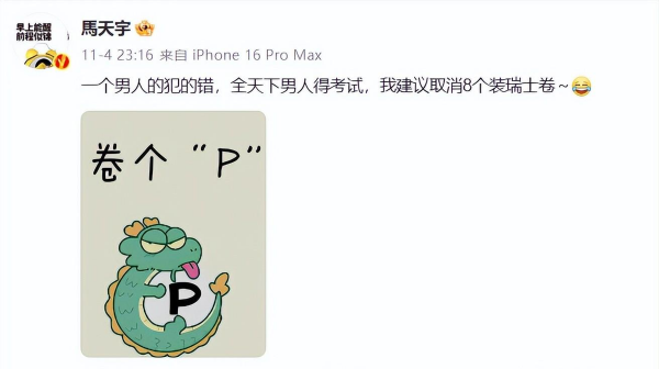 演员马天宇在11月4日发表感慨:"建议取消8个装的瑞士卷!"这句调侃背后,折射出的是对这种"制造话题"行为的无奈与讽刺。一个本该其乐融融的家庭分享,却被包装成了一出婚姻悲剧,这样的"流量密码"值得提倡吗?