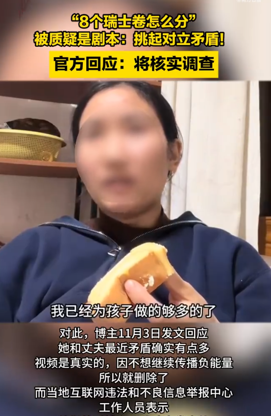 2024年10月28日,一位自称全职妈妈的博主在短视频平台发布了一段令人心酸的视频。画面中,她委屈地讲述着一包8个装瑞士卷的分配问题:两个孩子各吃两个,丈夫吃两个,等她忙完家务想吃剩下的两个时,却遭到丈夫的百般阻挠和说教。