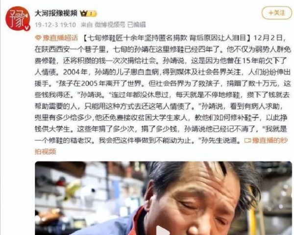 其实这件事早就有人提过,早在2019年,《大河报》就报道过老孙,只是当时没人特别关注,现在短视频火了,大家才重新注意到他,其实他并不是一夜之间冒出来的英雄,而是二十年如一日,默默地在街角修鞋、捐款,一直安静地过着自己的生活。
