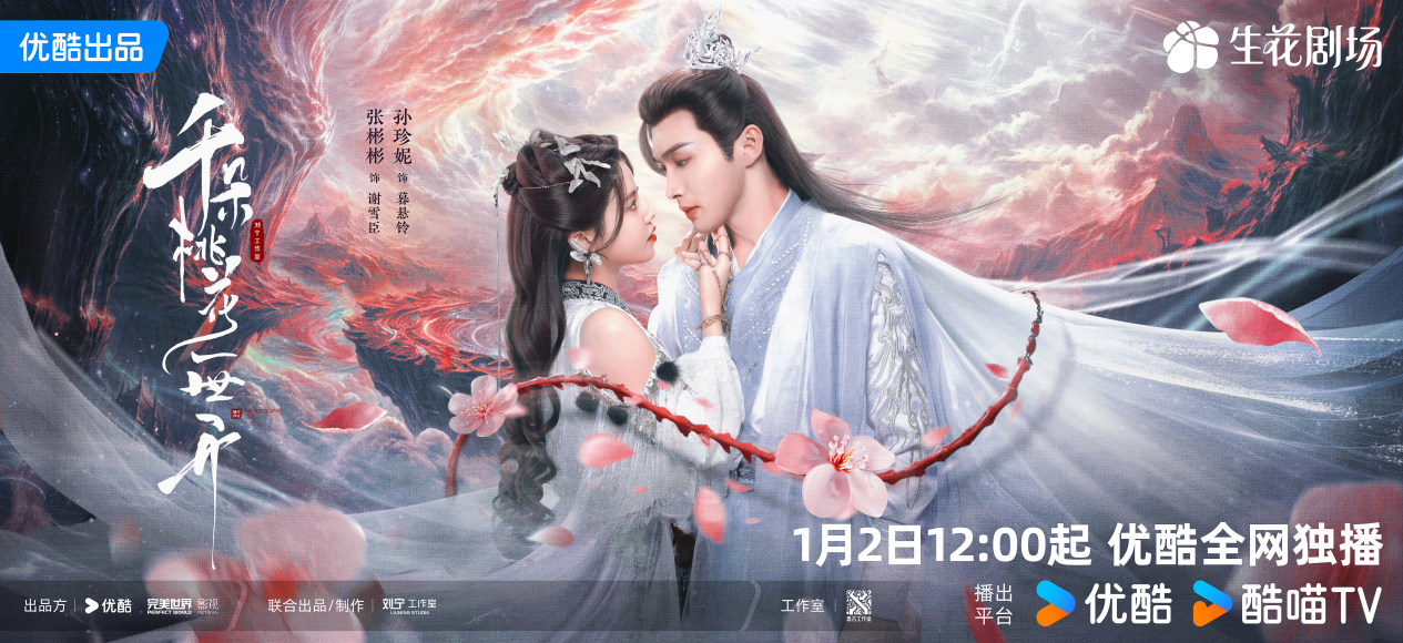 今日,由优酷、完美世界影视联合出品的中式玄幻剧《千朵桃花一世开》正式宣布定档。该剧由刘宁、张元欢担任总制片人,何澍培执导,李玲担任艺术指导及造型指导,张彬彬、孙珍妮、汪铎、张雅钦、吴宇恒、陈雨贤等一众实力派青年演员领衔主演。剧集将于2025年1月2日在优酷、酷喵TV生花剧场盛大开播,并同步发布了定档海报及上线预告片。该剧制作团队深入挖掘东方传统美学,以突破性的时空循环叙事策略,塑造出独树一帜的美学风格,展现出前卫的调性,有望为观众带来耳目一新的视听盛宴。