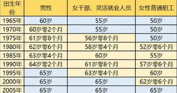 无论哪种方案,目前十四五规划都已经明确了最晚实施时间为2025年。就眼下来看,新政策实施影响最深的是以下三种人:60岁的男性干部、55岁女性干部和男工人、50岁女工人。
