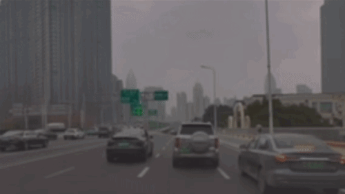 银色SUV紧接着向右变道,在超过黑色SUV后又开始向左变道,超至黑色SUV前。此时,涉事车辆已经驶入新闸路下匝道,随后就发生了本文上述一幕。