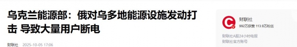 10月10号,乌克兰这次停电是最严重的,也是自从2022年爆发冲突之后最严重的停电,军事工业系统的运转也受到了严重影响。