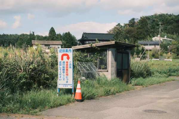 被封闭的区域基本都是当前还未能完成辐射清理的区域,或者是通往福岛核电站的必经区域。当时在路过一个路口时,我还发现罕见地有两个穿着制服值班的守卫。但直到我回国重新整理这段游记时,才意识到照片背后的那座双叶医院和紧邻的养老院,曾发生过多么骇人的惨剧。