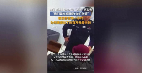 元旦当天,上海浦东一家高档手表店闹出大事,68岁的王阿姨拿着银行卡,非要花92万买块名表,说要寄给"男友"激活百万账户,幸亏店员觉得不对劲报了警,民警磨破嘴皮子劝了近一小时,才没让阿姨的养老钱打水漂。