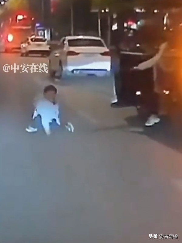 一名女子在路边突然情绪失控,用力将身边的一名男孩推倒在地。更危险的是,她直接将男孩推到了马路中间的车流里。