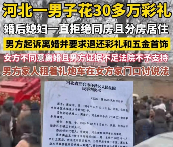 小伙哭诉,新娘婚后长期分房睡,睡觉不脱衣、极少换衣物,坚决不履行夫妻义务。多次找媒人调解无果后,他一纸诉状告上法院,要求离婚并返还全部财物。可这场看似"证据确凿"的诉讼,却迎来了神反转--法院一审直接驳回了他的诉求。