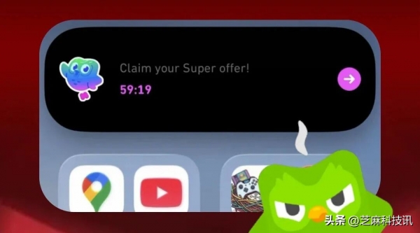 近期,知名外语学习 App 多邻国(Duolingo)被曝利用"实时活动"功能,在 iPhone 灵动岛区域违规推送自家 Super Offer 会员广告。