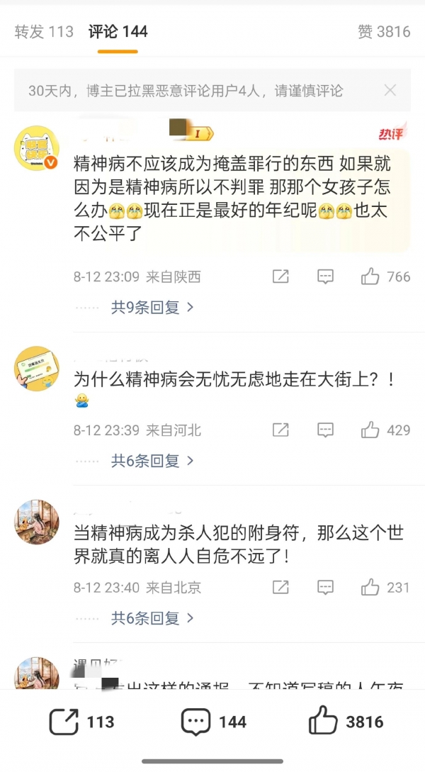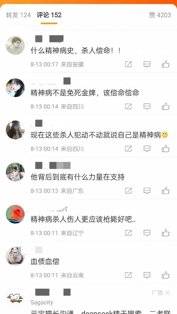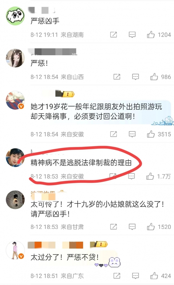 网友们的观点很一致:精神病不是逃脱法律制裁的理由,必须严惩凶手,大家会持续关注这件事。
