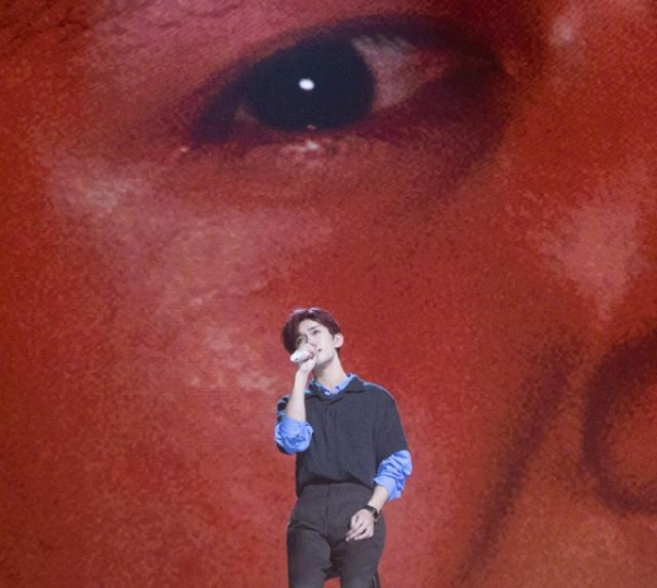 嗓子疼到吞口水都皱眉,易烊千玺还是把麦克风举得笔直。