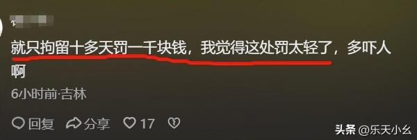 面对如此结果,有人质疑:"只拘留十多天罚一千块钱,处理结果是不是太轻了"。