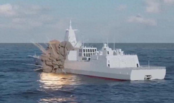在视频中,法国发射的导弹,直接命中了我国的055大驱,并且导致大驱燃起了熊熊大火,一看就已经完全失去了战斗力。