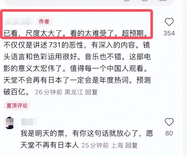就票房数据来说,《731》上映前一天,"想看"的网友已超450万,预售票房破1.57亿元,首日很可能超2亿。大家的热情很高涨,就差等着揭晓口碑了。