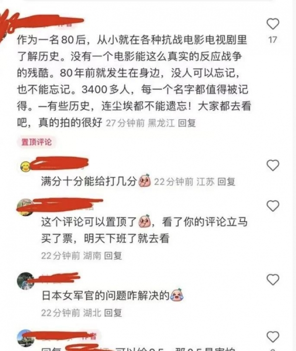 可也有不少观众一边难受一边说,这电影看完会让人心里发毛,因为太过于直面历史的惨烈。有爸妈担心,"这么大尺度,孩子能不能一起看?"其实电影宣传里,预告片和海报都写明了--"18岁以下观众请谨慎观看"。
