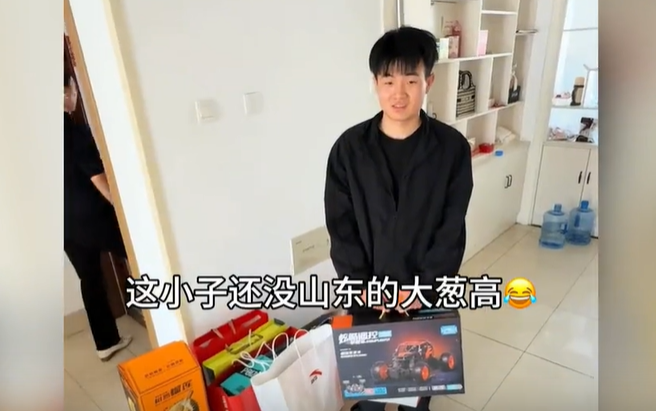 女生调侃男友还没山东大葱高,跟在自己妈妈身后像个新兵蛋子。