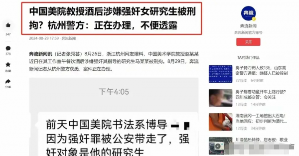 8月29日,一则中国美术学院教授强奸女研究生的消息刷爆了网络,据悉,这位出事的教授姓赵,是中国美术学院书法学院的博士生导师,而他涉嫌强奸的正是自己的女研究生马某某。