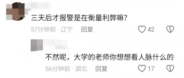 有网友对受害者报警的真实原因提出了质疑,表示她为何不当场报警,而是要等一天。这一天时间,双方又有着怎样的协商沟通,或者说讨价还价呢?
