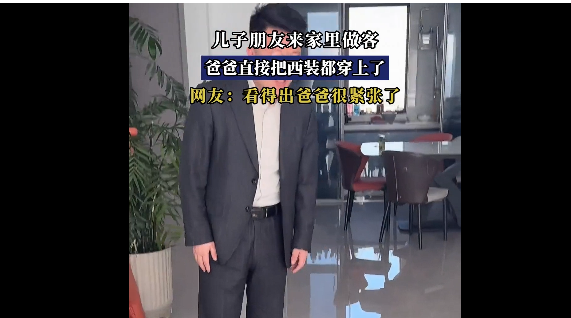 近日,儿子女性朋友来家里做客,爸爸得知消息直接把西装都穿上了,网发:看得出爸爸很紧张了