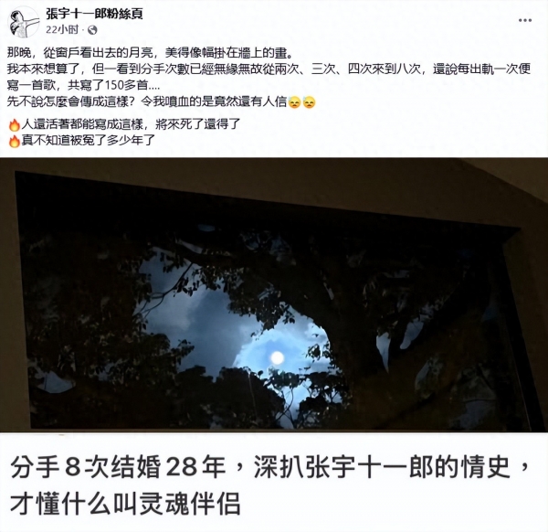此前,6月21日,张宇曾在个人社交平台上罕见地发出长文,讲述了与妻子十一郎的近况。