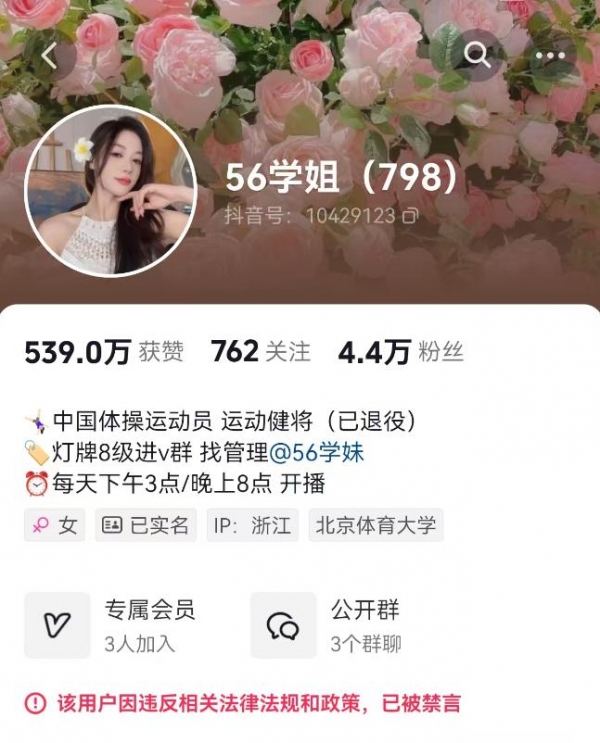 此前,11月24日晚,吴柳芳抖音账号因违反社区规定被禁止关注,其账号视频作品数也从57个降为7个,许多疑似"擦边"视频已无法查阅。