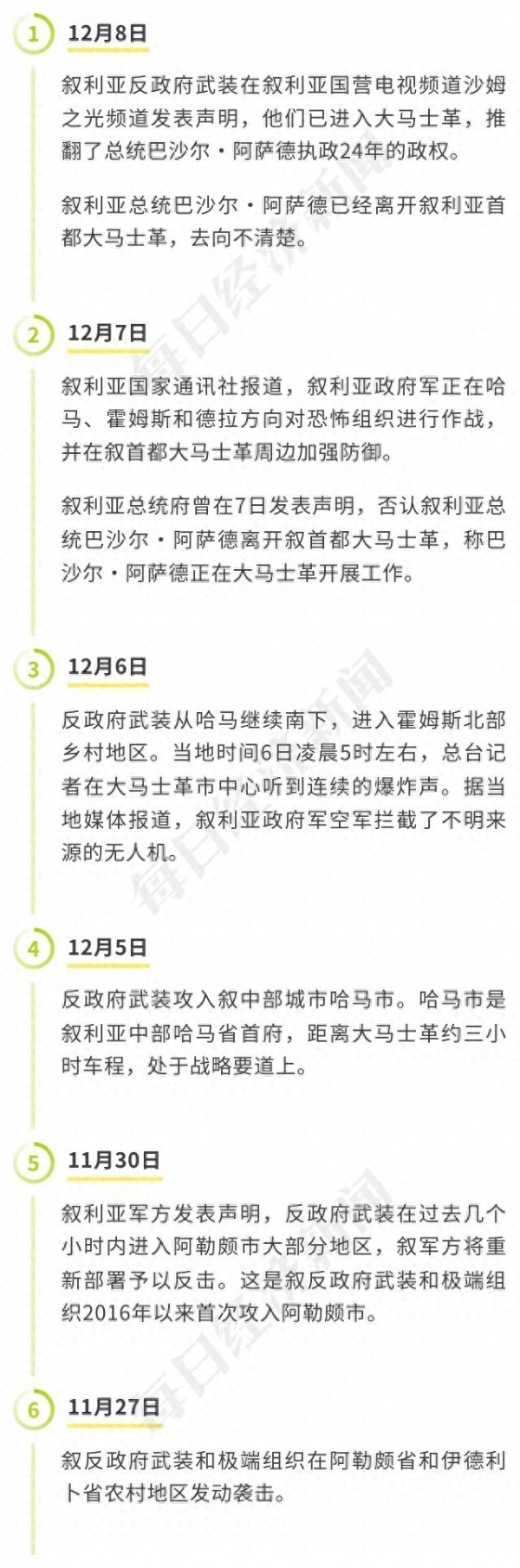 叙反对派武装快速推进战事时间线一览(每经制图,根据央视新闻报道梳理)