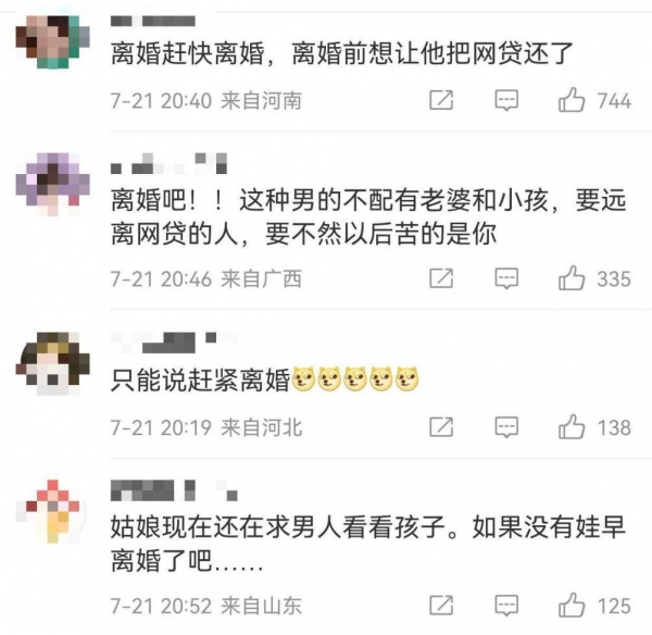 评论区一堆人劝妻子离婚,毕竟网贷+丈夫生产期间不闻不问+婆家绝情,完全是地狱。