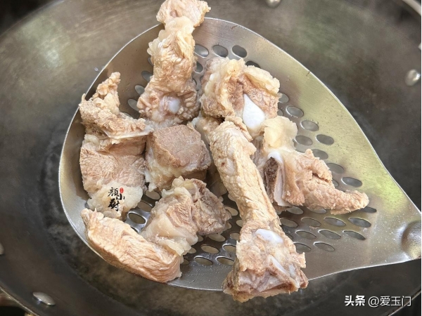 步骤二:排骨得先经"三重去腥":盐冷水浸泡30分钟析出血水,再冷水下锅加姜葱料酒慢焯,撇净浮沫后用热水冲洗。