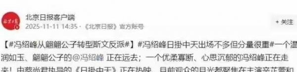 冯绍峰《日挂中天》上映,从"过气奶油小生"就蹦到大男主,连北京日报都说他演技不赖。影评里满满都是"终于等来了",买票人群多到都说只看冯绍峰。问哪位中年男演员还能有这爆发力?还真不多见。