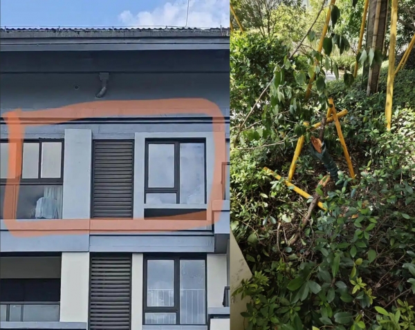 可以看见,孩子坠楼的地方,还有一根被压断的树枝,这个是孩子在掉下楼的时候砸断的。