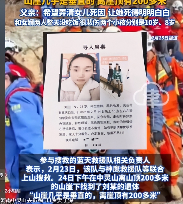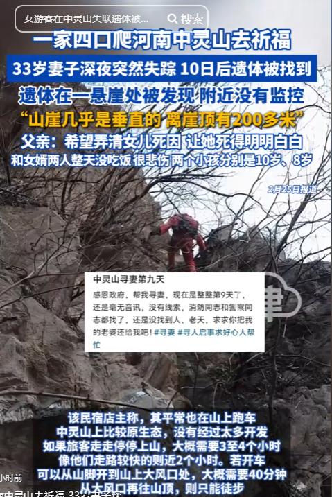 就这样前前后后一共寻找了数十天,直到2月24号上午,人找到了,就在安阳宫南面的悬崖处,那个民宿老板称那是最山顶的地方。