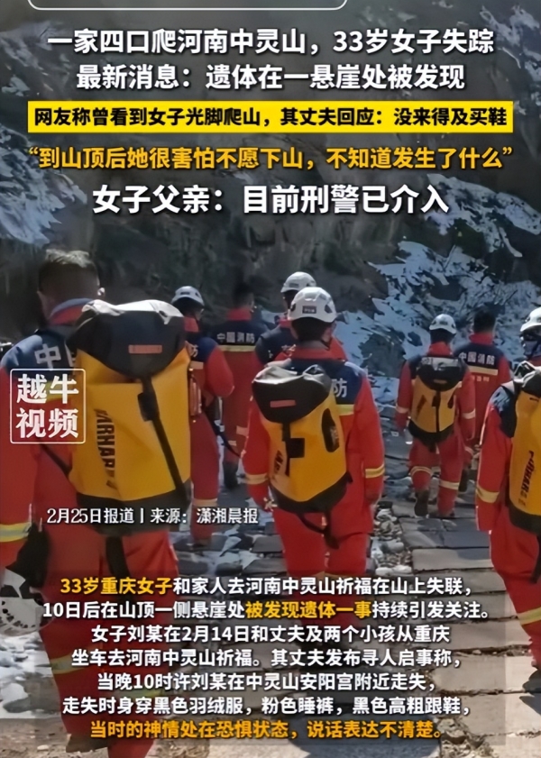 2月14号下午1点左右,一家四口开始上山,可问题从一开始就埋下了,有网友说当天看见刘某光着脚一个人走在前面。
