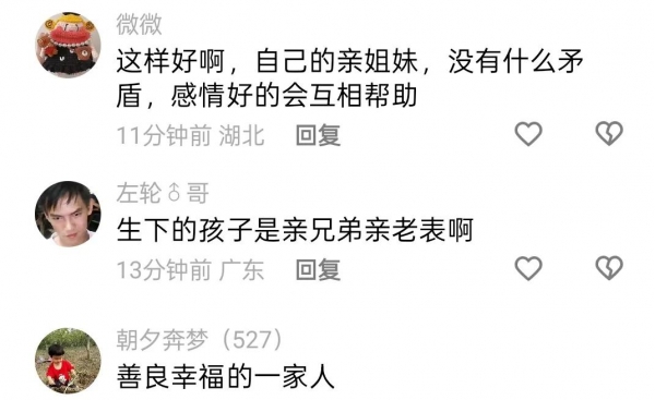 可这家家庭不同,在娘家同一个妈,在婆家还是同一个妈,