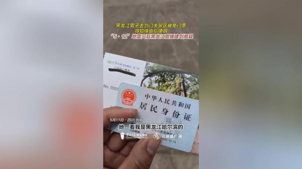 2月3日下午,第一次来到剑门关的游客邵先生在售票处递上身份证,准备购买门票挑战惊险的猿猱道。工作人员在查看证件后告诉他:"黑龙江的游客,到我们景区是永久免票的。"邵先生连忙解释自己几年前已将户口迁到了成都,对方依然亲切表示:"没关系,您原籍是黑龙江,一样可以免票。"