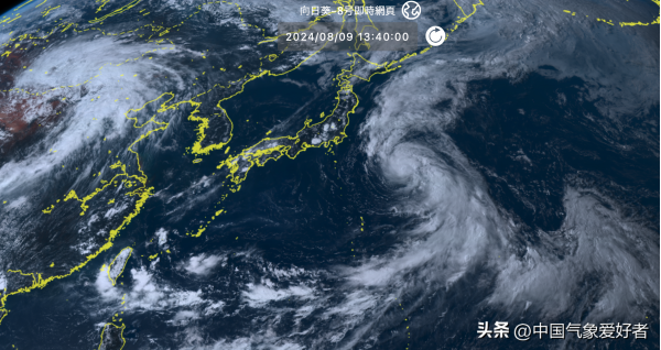 8月9日,东亚-西太平洋地区卫星云图上可见,陆地和海洋上两簇庞大的螺旋形状云系遥相呼应,显示出目前陆地和海洋上天气形势都并不稳定:在陆地上,东移的西风槽带来冷空气,与暖空气的追尾形成了温带气旋,昨夜今晨气旋暴雨搅动我国北方天气,从河套到黄土高原出现了规模惊人的暴雨-大暴雨区,宁夏惠农、沙湖和陕西志丹直接打破了当地日降雨纪录,其中志丹数小时内疯狂倒水172毫米、相当于当地小半年的降雨量。