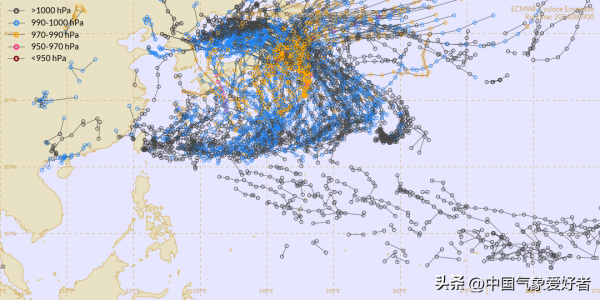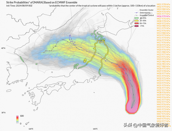在2024年的8月,日本以南海域迎来了台风活跃期,随着广阔幅合带的形成,5号台风玛莉亚在当中脱颖而出。超级计算机的集合预报显示,台风的预测路径密集地出现在日本周边海域,看上去一团乱麻,仿佛要将整个日本列岛包围其中,显示出台风活动的高度活跃。