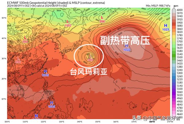 台风玛莉亚就是在这种高压系统的作用下,在北上后被"挤压"向西,之后再沿着高压边缘逐渐移动,可能在接下来罕见的于日本东部沿海登陆。