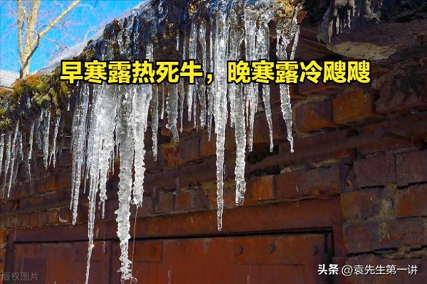 这句农谚的意思是说,如果是"早寒露"的年景,那么根据古人的经验来看,预示到了冬天就会比较暖和,说明是一个"暖冬";如果是"晚寒露"的年景,那么根据古人的经验,这预示着到了冬天,天气就会比较寒冷,说明雨雪比较多,这是一个"冷冬"。当然,"热死牛"和"冷飕飕"都是一个夸张的说法,只是为了突出"冷冬和暖冬"截然不同的天气特点。