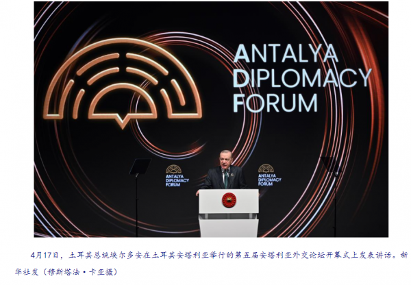土耳其总统埃尔多安在此次论坛上公开表示,只要俄乌双方及相关各方有谈判意愿,土耳其已完全准备好主办乌克兰问题领导人级别会谈,为各方搭建沟通的桥梁。