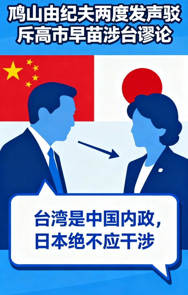 2025年11月以来,日本首相高市早苗在台湾问题上的挑衅言论引发多方反对,其中日本前首相鸠山由纪夫先后两次公开表态,明确驳斥其错误观点,强调"台湾是中国一部分",反对日本干涉中国内政,成为日本国内理性声音的重要代表。