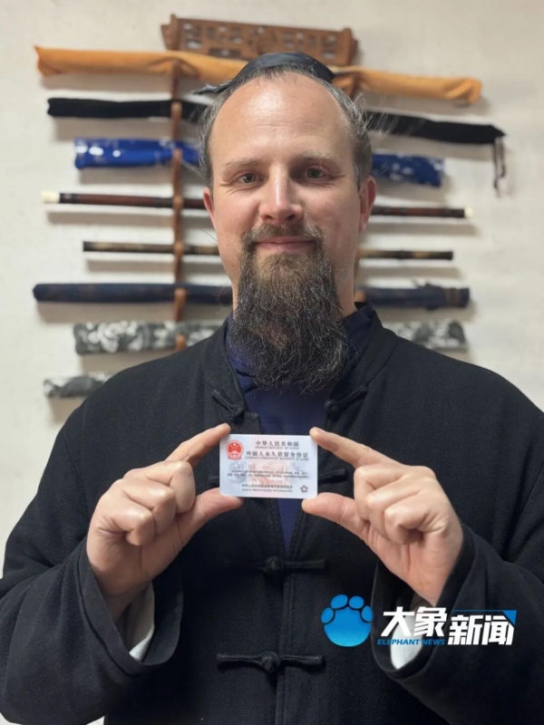 "90 后 " 杰克是美国人,中文名叫李资根。2010 年,杰克从美国来到中国湖北武当山,师从袁师懋道长,之后留在武当山学习至今。15 年间,杰克成为武当三丰派第十六代传人,开始带弟子并致力于向全世界传播武当功夫。今年 4 月,杰克拿到了被称作 " 五星卡 " 的中华人民共和国外国人永久居留身份证,正式获得了在中国长期居留、工作、生活的资格。