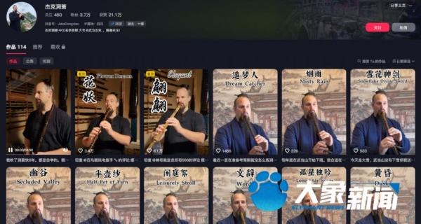 " 很多人把来武当山学太极拳当作毕生目标,却只能待一两个月,刚入门就要离开。" 出于这样的遗憾,杰克开始拍短视频,如今在海内外运营着多个自媒体账号,涵盖武术、文化、传统音乐等领域。此外,他译制的英文版洞箫音乐相关书籍已经出版,其它中国传统文化的书籍翻译工作也在进行中。
