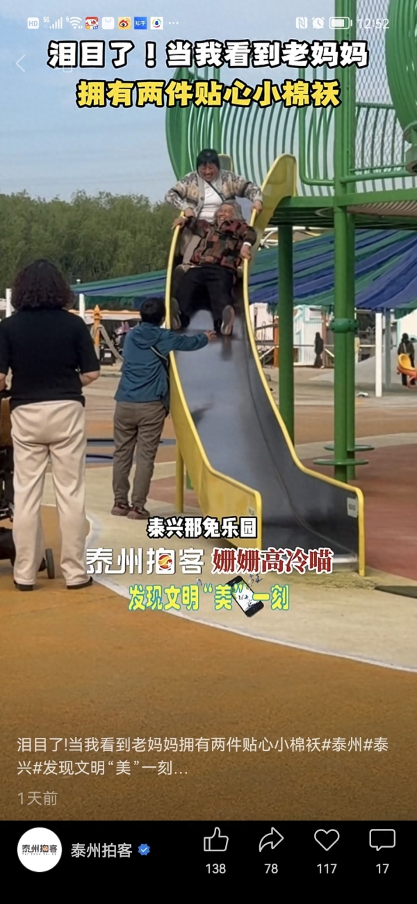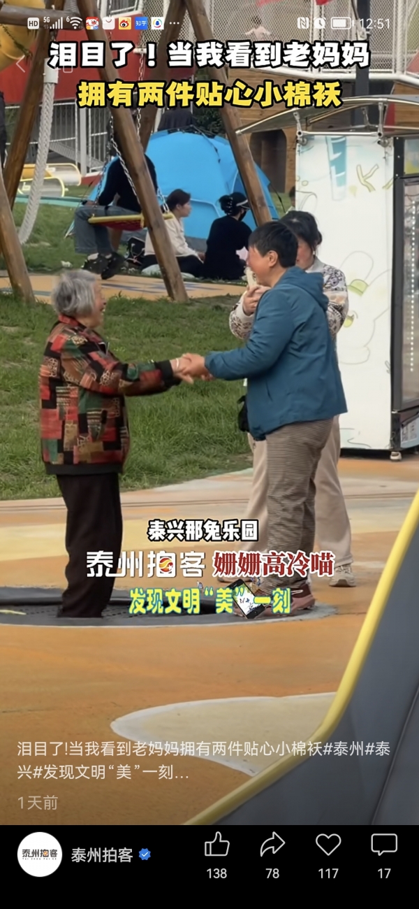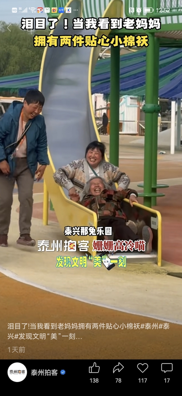 在泰兴这座充满温情的城市里,这份跨越年龄的快乐,这份三代人之间的深情,如同秋日暖阳,温暖了每一个见证者的心。它提醒着我们:爱要及时,陪伴要趁早,因为有些笑容,一旦错过,就再也找不回来了。