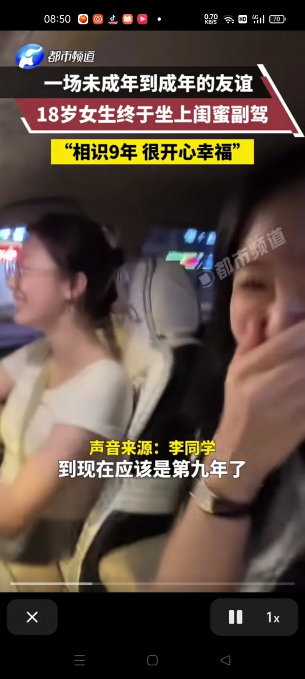 据李同学透露,自己和闺蜜认识到现在已经第九年了,两人都是新手,自己坐上她的车就很放心,很开心幸福。
