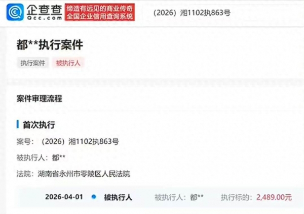 判决是下来了,可都美竹一直没动静。她不道歉,也不赔钱。拖到今年4月1号,朱姐申请了强制执行,法院就立案了。现在在中国执行信息公开网上,都美竹的名字就在被执行人名单里,执行标的2489元。