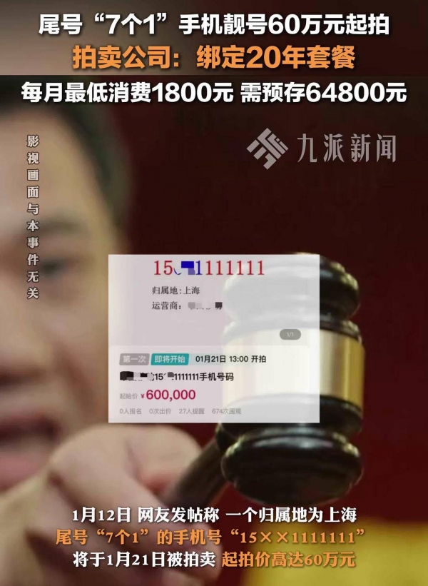 有意思的是,同一天拍卖的另一个尾号"888888"的手机号,境遇却截然不同。按说"8"谐音"发",在吉祥数字里比"6"更受追捧,可这个起拍价100万的号码,最终因为无人出价流拍了。究其原因,每月1999元的最低消费协议成了"劝退利器"。算笔账就懂了:就算不用额外消费,一年也得花23988元,十年就是近24万,长期持有成本太高,自然没人愿意接盘。