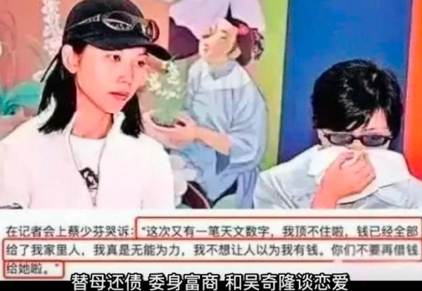 她的母亲沉迷赌博,把她推进娱乐圈,就是想靠女儿还债,连刘銮雄那样的大佬都被蔡少芬的母亲当成提款机利用过。