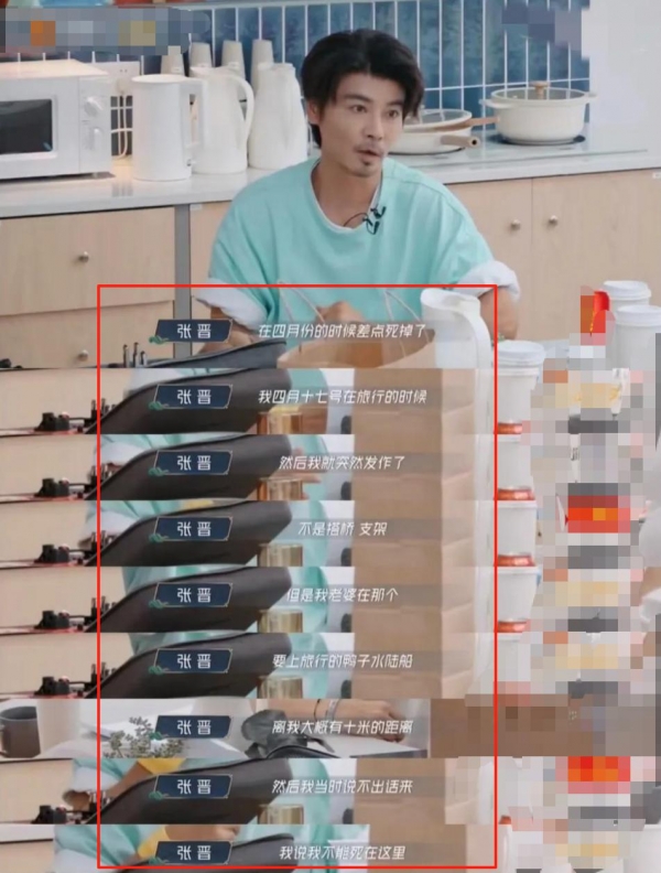 张晋在节目中说出了一个让人头皮发麻的消息:他在四个月前突发心脏病,在国外差点没挺过来,如今身体里已经多了一个支架。
