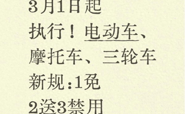 从2026年3月1日开始,全国多地交管部门针对电动自行车、摩托车、电动三轮车同步落地通行管理新规,结合道路交通安全整治与便民服务要求,将核心举措总结为1免、2送、3禁用,覆盖登记、通行、安全、执法全环节。新规既为车主减负、简化办事流程,也明确禁止红线、压降事故隐患,全部依据官方政策与法规执行,不夸大、不误导。